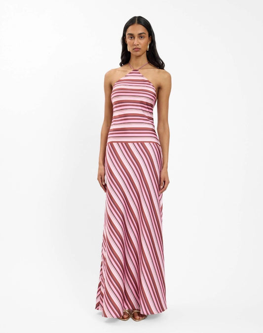 Halter Maxi Dress Magenta Stripe | With Harper Lu