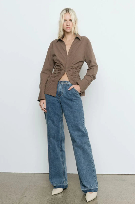 Birdie Gingham Tie Front Top - Brown | Rhythm