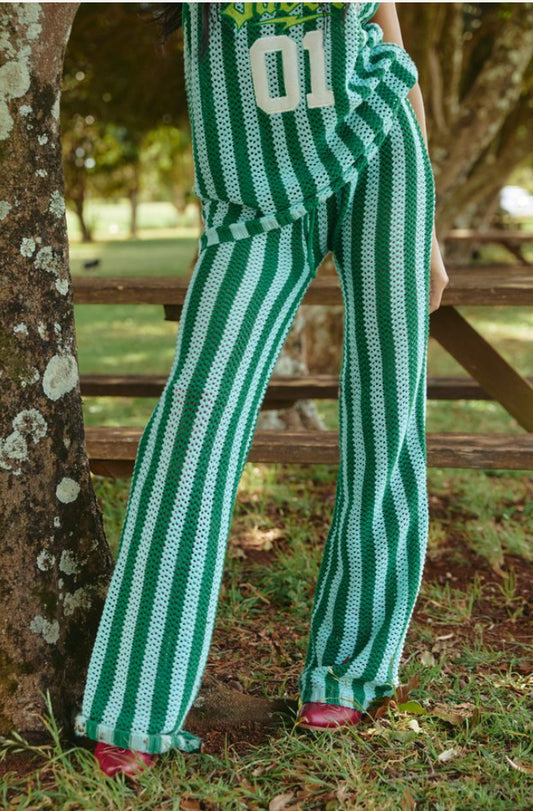 The Knit Stripe Beach Pant - Green Stripe | Sabbi