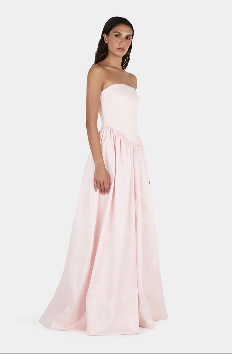 The Audrey Gown is a feminine strapless maxi dress with a fitted bodice and a gathered dropped waist detail. Cut from our signature textured taffeta, the dress accentuates the female figure with a shaped hip seam and floor length voluminous skirt. Even better, the dress has pockets, making it the perfect wedding guest dress.