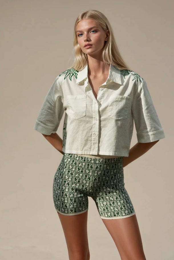 Featuring our signature yardage print, these shorts bring a bold, modern twist to a timeless design. Available in four stunning colourways, each pair adds a pop of personality to your wardrobe, while remaining easy to style with any top or accessory.