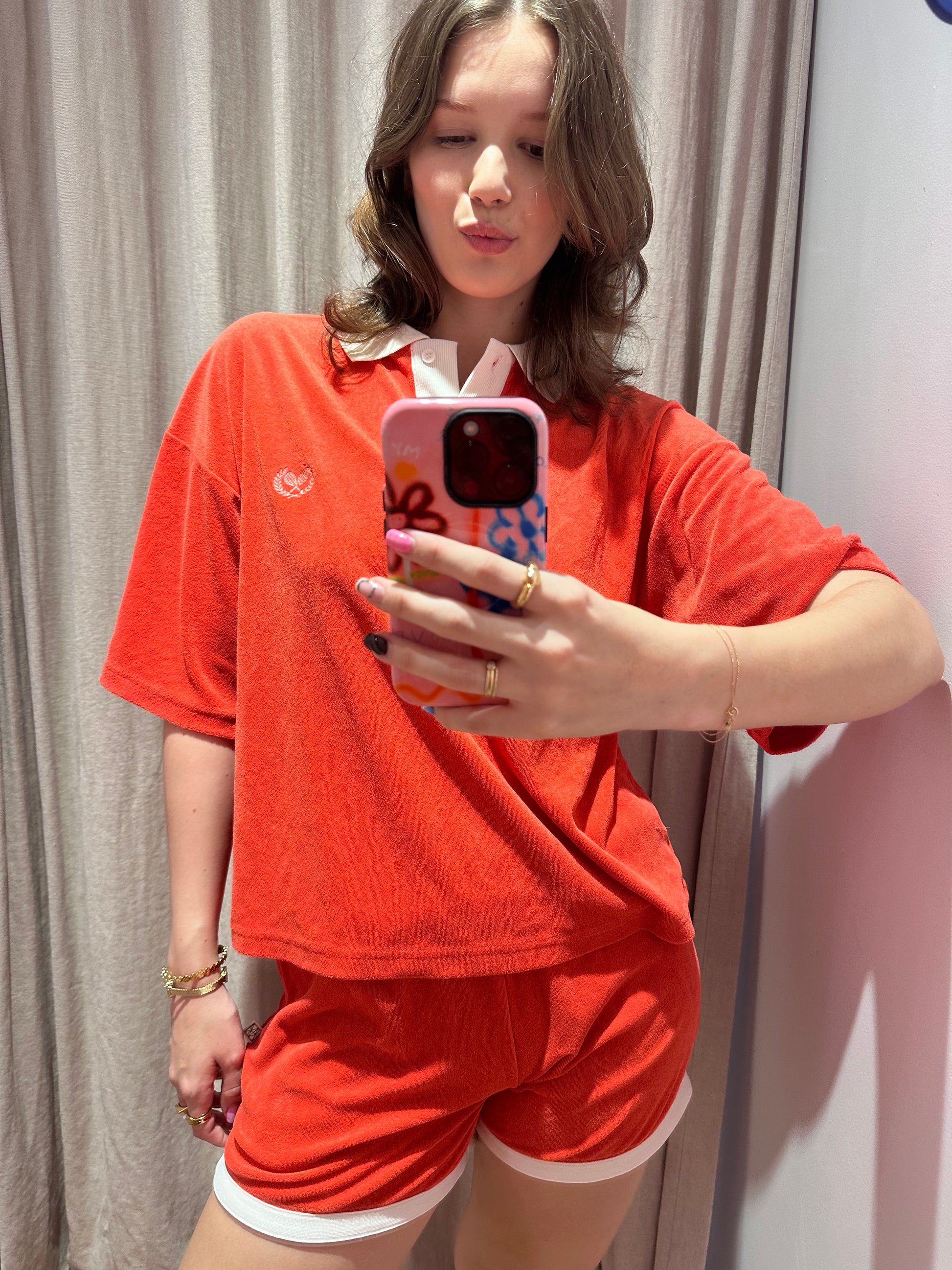 Introducing our Marseille Terry Short in Coral. Crafted from 100% cotton, this terry towelling shorts features a white trim around the shorts. The Marseille Terry Short is comfortable, stylish and elevated.
