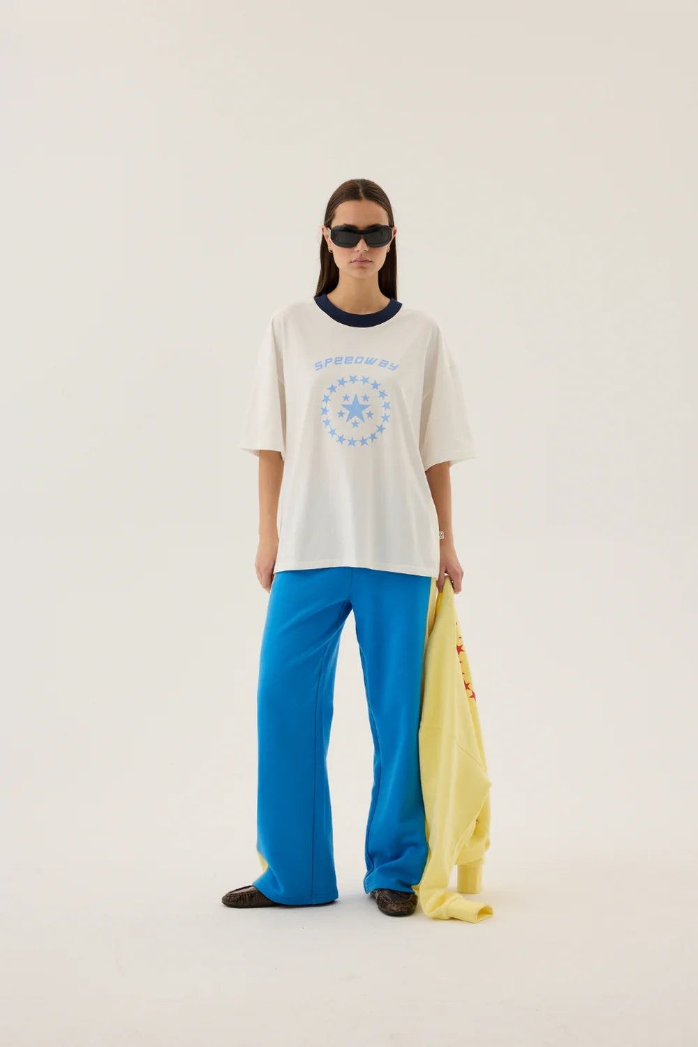 The Speedway Oversized Tee in Snow is made from 100% luxurious soft cotton, and features a contrasting round neckline and printed graphic on the front. Designed in an oversized, relaxed fit, this tee is meant to be worn generously, offering a casual, effortless style that feels just as comfortable as it looks. Pair back with our Stripe Sports Sheen Pant in Snow for effortless everyday style.